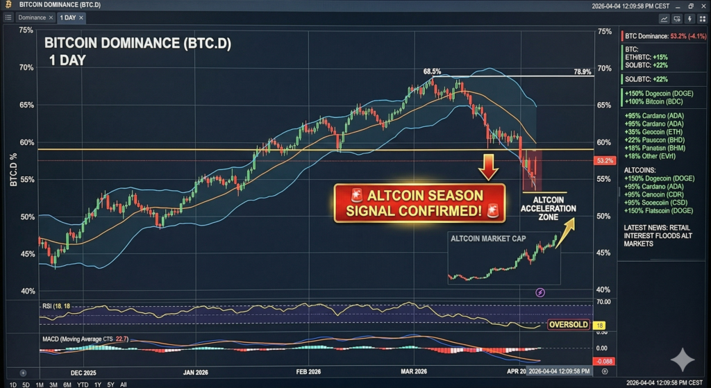 Calaamadda ugu horreysa waa Bitcoin dominance oo daciifa ama ka soo degta heer muhiim ah. CoinDesk waxay July 2025 sheegtay in BTC dominance uu ka hoos dhacay key 200-day moving average, taasna ay ahayd calaamad ay qaar ka mid ah analyst-yadu u arkayeen in sustain altcoin outperformance uu bilaaban karo haddii heerkaasi sii jiro.