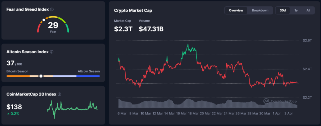 Haddii aan ku salayno xogtii ugu dambeysay ee si furan loo heli karo, sawirka hadda jira waa mid muujinaya in crypto market-ku weli leeyahay Bitcoin dominance xooggan, laakiin altcoins qaar ay mararka qaarkood helayaan pockets of strength. CoinMarketCap’s public dashboard snapshot wuxuu muujiyay BTC dominance qiyaastii 58.6%, ETH dominance 10.4%, market cap guud oo ku dhow $2.39 trillion, iyo Fear & Greed Index oo ku jira 29/100, taas oo u dhow xaalad taxaddar ah, ma aha euphoric altseason buuxa.