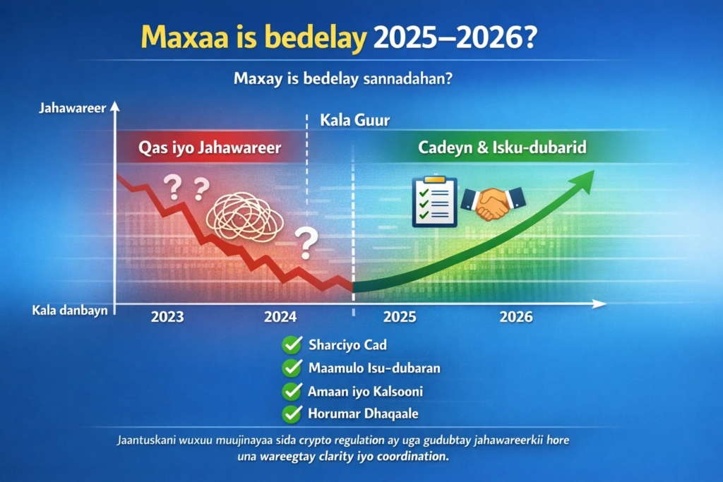 Markii aad bilowgii maqaalka is weydiisay, “Maxaa dhacaya haddii xeerar cusub ay si buuxda u beddelaan crypto?”, jawaabtu hadda waa mid cad: way dhacday. Crypto Regulation 2026 ka ma aha hadal meel fog ka imanaya. Waa xaqiiqad hadda qaabaynaysa Bitcoin, DeFi, altcoins, iyo waddooyinka maalgashi ee mustaqbalka. SEC waxay dhaaftay heerkii jahawareerka, CFTC-ka waxay gashay wada shaqayn, EU waxay bixisay rulebook, Asia-ka waxay dhistay frameworks tartan leh.