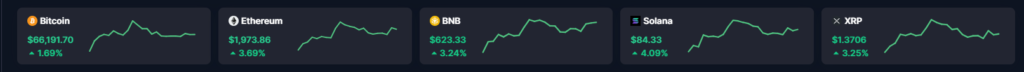 - Qiimaha hadda: Bitcoin (BTC) = $66,1890.21, Ethereum (ETH) = $2,003.89.