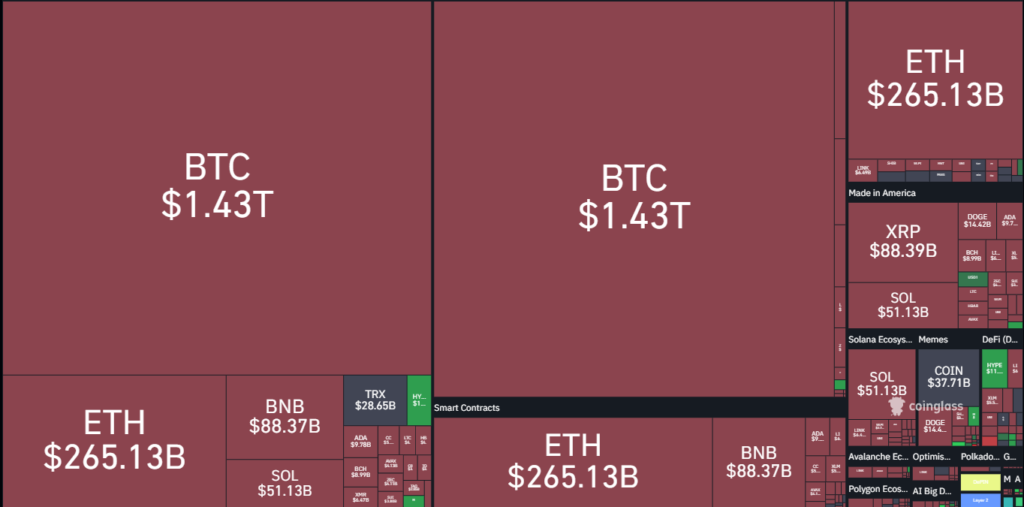 Market Cap ka guud ee suuqa waxuu joogaa maanta $2.44 trillion, halka (Volume) hantida guud ee suuqa la isku dhaafsaday 24 saac u dambaysay ay gaarayso $103.08 billion.
